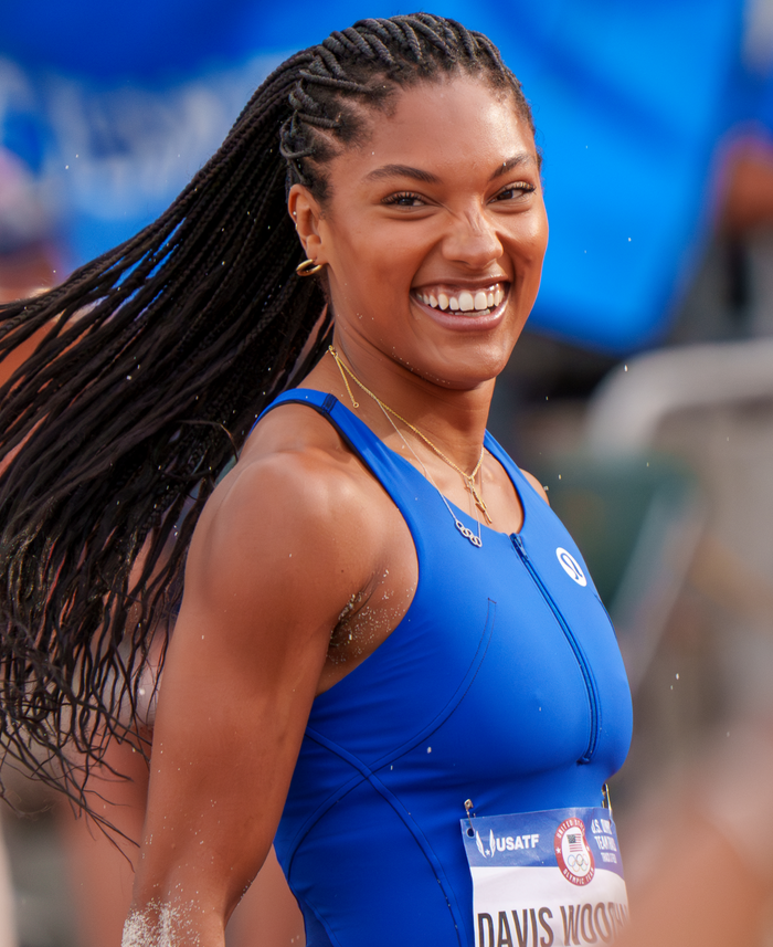 Tara Davis-Woodhall (25) is an American long jumper and the reigning Olympic Gold Medalist who remains undefeated the past two seasons. Tara is a two-time Olympian (2020, 2024) and is currently ranked #1 in the world. She won Gold at the Paris 2024 Olympics, is the 2024 World Champion, and the 2023 and 2024 US National Champion. Tara is known as “America's Cowgirl” with her iconic cowboy hats, custom USA boots, and infectious personality both on and off the field. She is also the assistant track coach at Kansas State. As a former NCAA Division 1 athlete at the University of Texas, Tara became a four-time All-American, won Nationals, and shattered two NCAA collegiate records, earning her the title of a double-record breaker in the same week.